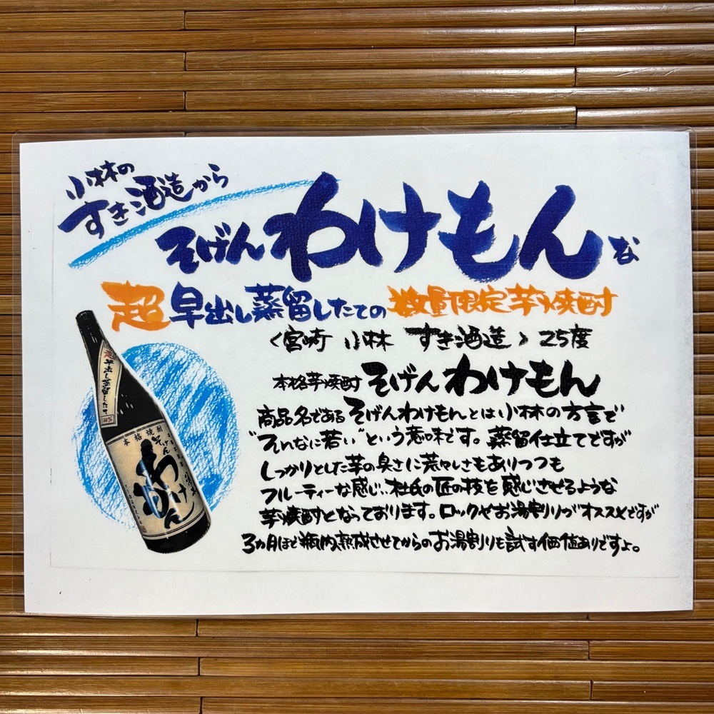 熟成まで待てない方々に、蒸留仕立ての甘く・しっかりとした味、フリーティーな焼酎を超早だしでお届けしています。