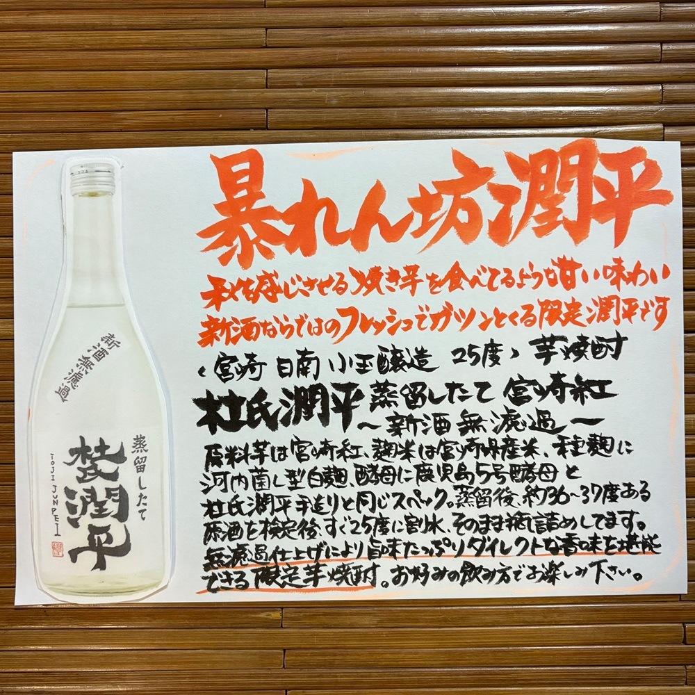 杜氏潤平 蒸留したて 宮崎紅 ~新酒無濾過~ 2025年 25度 1800ml(1.8L) 小玉醸造 *季節限定* 新焼酎 焼酎ヌーボー