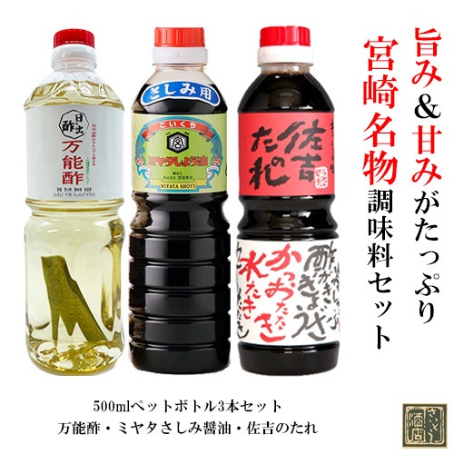 【宮崎名物の調味料(しょうゆ・酢・みりん・焼き肉のたれ)】