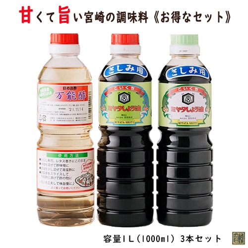 【宮崎名物調味料お試し3本セット】〔宮田本店〕ミヤタさしみ醤油・さしみ醤油(甘口)&〔日の出酢〕万能酢 500ml【送料無料】